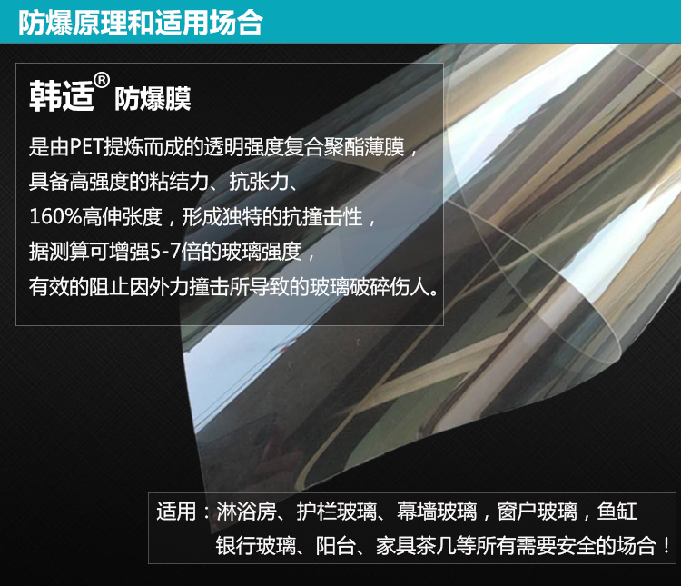 杭州韓適防爆玻璃膜品牌,服務杭州、紹興、湖州、寧波、溫州、臺州、嘉興、舟山、麗水、金華、衢州全浙江地區。輻射江蘇、上海、北京、天津、廣東、福建等全國地區。